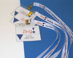 Every conference or training participant needs a nametag and place for a “mini schedule” or business cards! This is the perfect lanyard – complete with a ¾” wide polyester white strap with red and purple repeating text: “Zing! ™Live fully. Lead faithfully. Leave a legacy”. A 3” high x 4” wide clear plastic name tag badge holder with bulldog clip is included for easy attachment to badges.