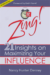 Much like the Fish Philosophy, Seven Habits of Highly Effective People, and other trend setting writings on leadership and motivation, Zing! ™ is based on the premise: “The energy you put out there is the energy you get to draw from.” The reader is encouraged to seek ways of changing small behaviors and attitudes through 21 “insights” ranging from self – inspection to humility.